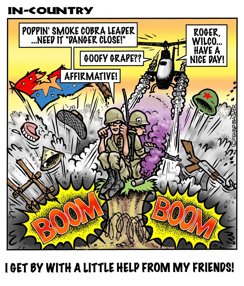 Phil enlisted in the Army in 1965 where you served for years in Vietnam. He became a graphic designer and has worked for the state of Oregon for 26 years. He retired in 2003 and started the Cartoon "In-Country". The cartoons reflect his experiences during his tour of duty in South Vietnam.