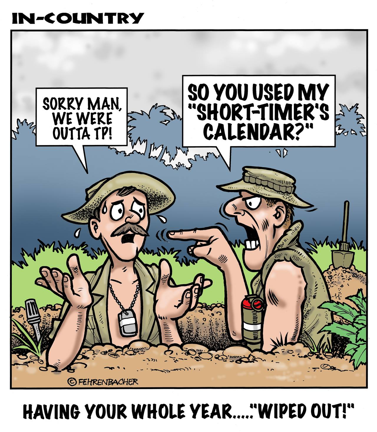 Phil enlisted in the Army in 1965 where you served for years in Vietnam. He became a graphic designer and has worked for the state of Oregon for 26 years. He retired in 2003 and started the Cartoon "In-Country". The cartoons reflect his experiences during his tour of duty in South Vietnam.